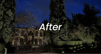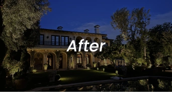 This luxury estate landscape lighting installation in Brentwood, Los Angeles transformed a grand Mediterranean-style property into a refined and commanding nighttime presence.